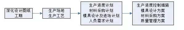 項(xiàng)目生產(chǎn)實(shí)施前,應(yīng)根據(jù)項(xiàng)目概況及特點(diǎn)進(jìn)行產(chǎn)前的生產(chǎn)策劃,重點(diǎn)要對(duì)生產(chǎn)場地、生產(chǎn)進(jìn)度、模具設(shè)計(jì)、物資采購、勞動(dòng)力需求和項(xiàng)目質(zhì)量控制難點(diǎn)等直接影響工程項(xiàng)目質(zhì)量、成本、進(jìn)度等重要環(huán)節(jié)內(nèi)容編制相關(guān)措施。